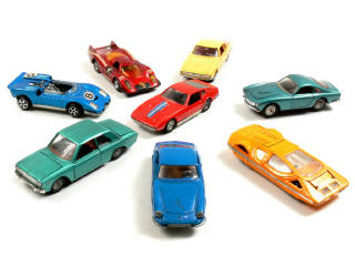 états de 'B' à 'C' - miniatures reproduisant les modèles : FORD (2 exemplaires différents dont un avec suspension arrière affaissée), FERRARI (3 exemplaires différents), MASERATI, MIRAGE & PORSCHE