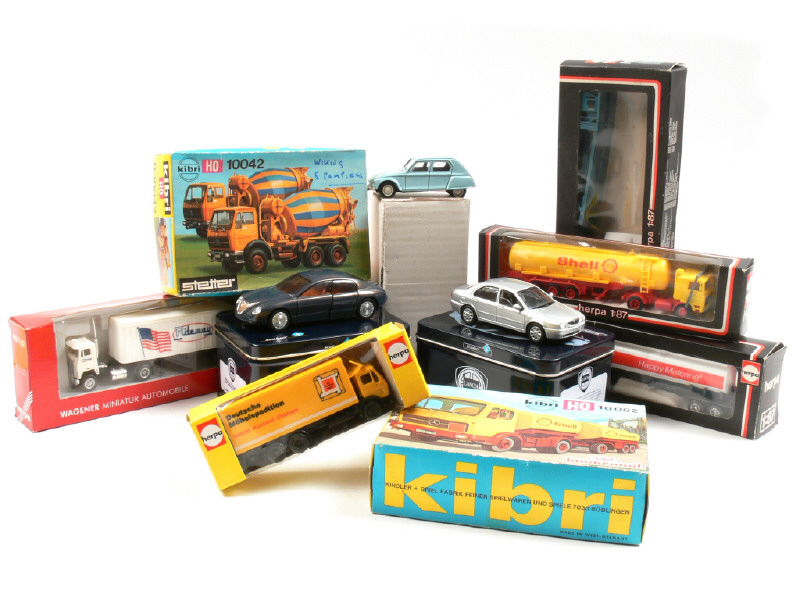 miniatures reproduisant notamment les modèles : CITROËN, LANCIA, FREIGHTLINER, CHEVROLET, MERCEDES & VOLKSWAGEN - on y retrouve les marques : HERPA, DUVI, SOLIDO, PRALINE & WIKING - 8 véhicules en boîte