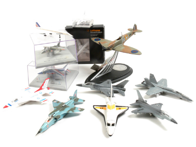 comprend notamment : 2 ALPHA JET, CONCORDE, DEWOITINE D520, 2 AIRBUS A340, SPITFIRE & CP4 JAGUAR - on y retrouve notamment les marques : CORGI TOYS, DINKY TOYS, ERTL, FRANKLIN MINT, REVELL & SCHABAK - 4 modèles en boîte - petits manques