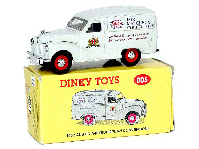 DINKY MATCHBOX 005 AUSTIN A 40 VAN 'MICA 1996 AMSTERDAM' 1952 gris pâle
