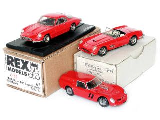 miniatures reproduisant les modèles : 250 GT California, 250 TR 1962 & 400 Superamérica 1962 - on y retrouve les marques : AMACAR, GRAND PRIX MODELS & REX MODELS - les pièces photo-découpées se décollent sur un modèle - manque une boîte