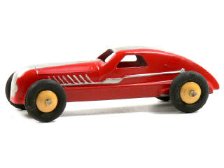 DINKY TOYS (FRANCE) 23B RENAULT de course (version avec roues à pneus 'M') rouge, flèche argent
