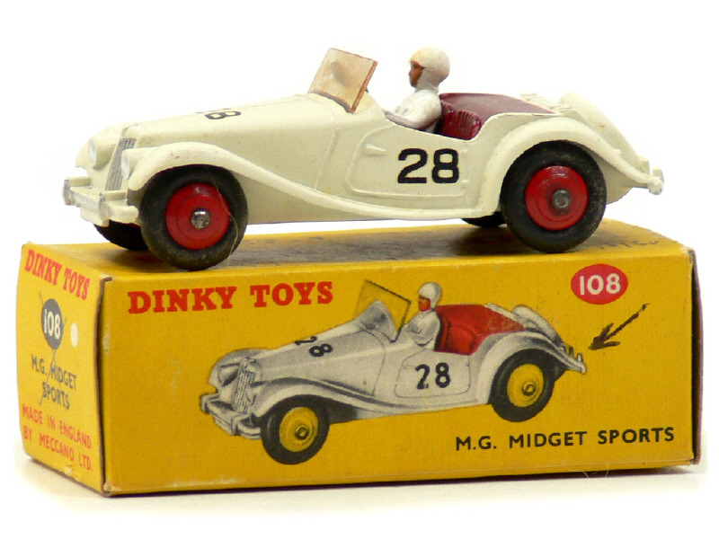 DINKY TOYS (GB) 108 MG MIDGET Sports blanc, intérieur bordeaux, jantes rouges