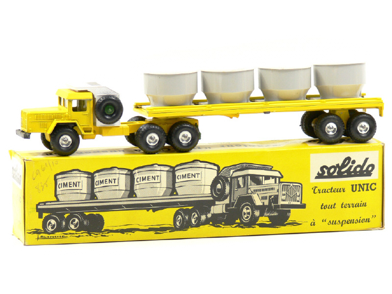 SOLIDO (FRANCE) 301 UNIC Semi-remorque plateau transport de cuves à farine jaune & blanc
