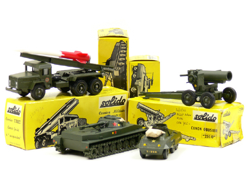 comprend : PT76, COMBAT CAR M20, UNIC lance-fusée & un obusier de 250 mm - jantes légèrement fondues sur 3 modèles - 4 boîtes avec petites annotations - quelques petits détails de peinture ajoutés sur un véhicule