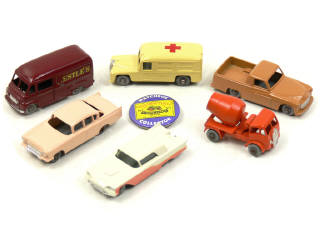 on y retrouve les modèles : DAIMLER (n°14), VAUXHALL (n°22), ERF (n°26), COMMER (n°50 & n°69, un véhicule en état 'C' avec décalques incomplets) & FORD (n°75) - on y joint un badge de la marque