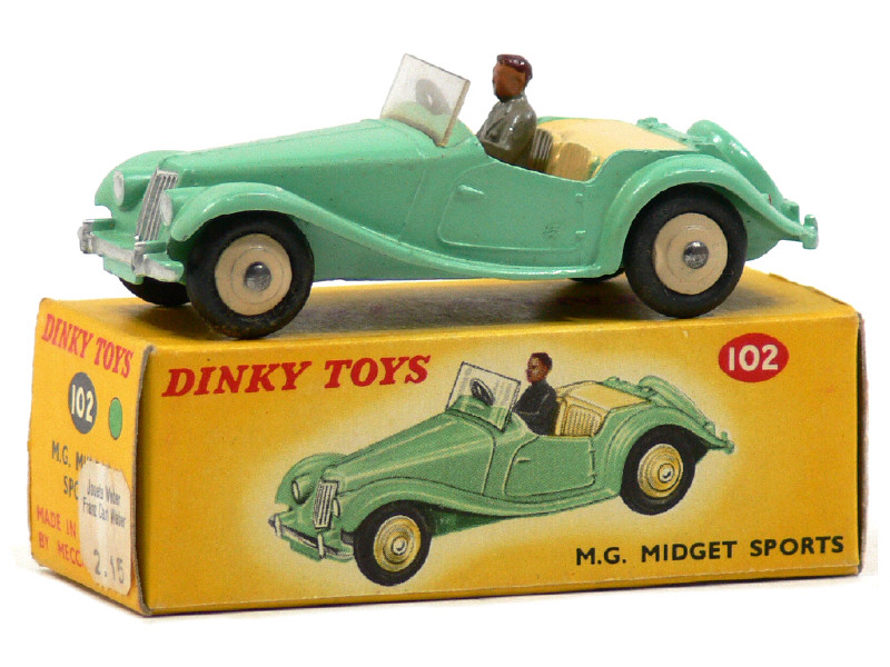 DINKY TOYS (GB) 102 MG MIDGET SPORTS vert pâle, intérieur crème, jantes beiges clair