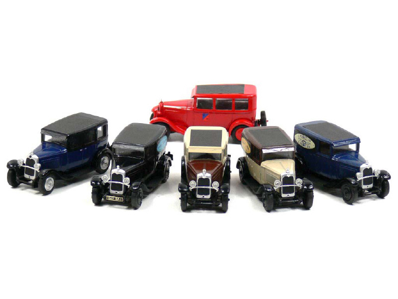 comprend : 4 commerciales avec publicités : AUBERT CHAPELIER (manque autocollant de toit), MARCELIN IMPRIMEUR, HOTEL REGINA, DEBERNIS CONFISEUR & 2 limousines dont une de pompiers