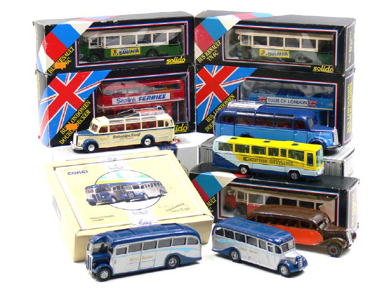 miniatures reproduisant les modèles : CITROËN, MERCEDES, A.E.C., BEDFORD & RENAULT - on y retrouve les marques : CORGI TOYS, DINKY MATCHBOX, NZG, CALANDRE (incomplet) & SOLIDO - petits manques - 2 véhicules sans boîte & 2 autres en coffret