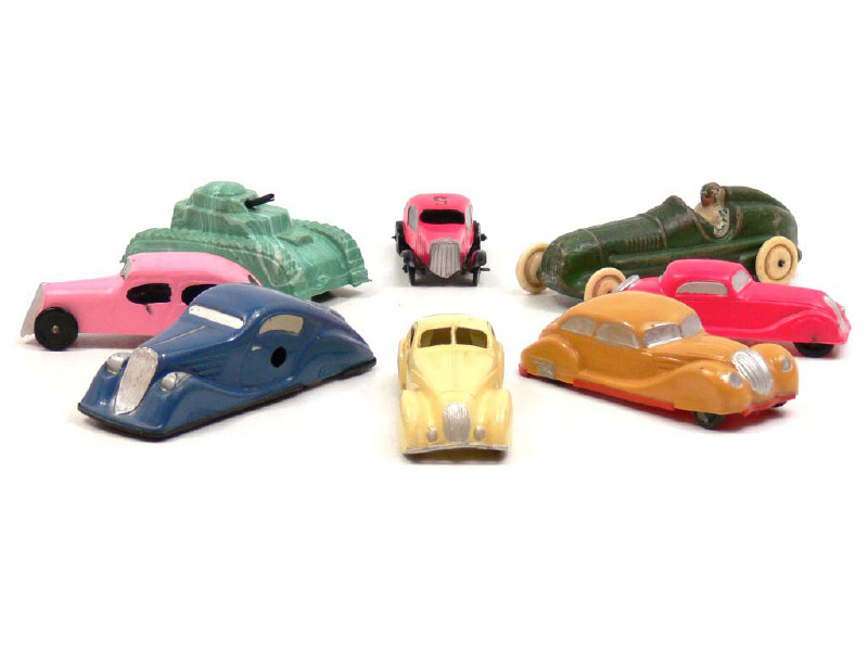 DIVERS Ensemble de 6 voitures & un char en celluloïd
