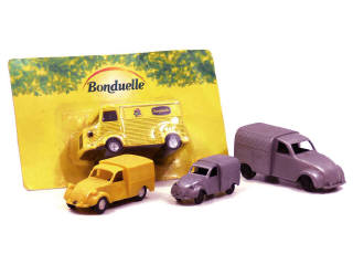 comprend : un 1200 KG (promotionnel 'BONDUELLE' sous blister jamais ouvert) & 3 2 CV (dont 2 motorisées) - on y retrouve les marques : HÜMMER, CLE & P.A.