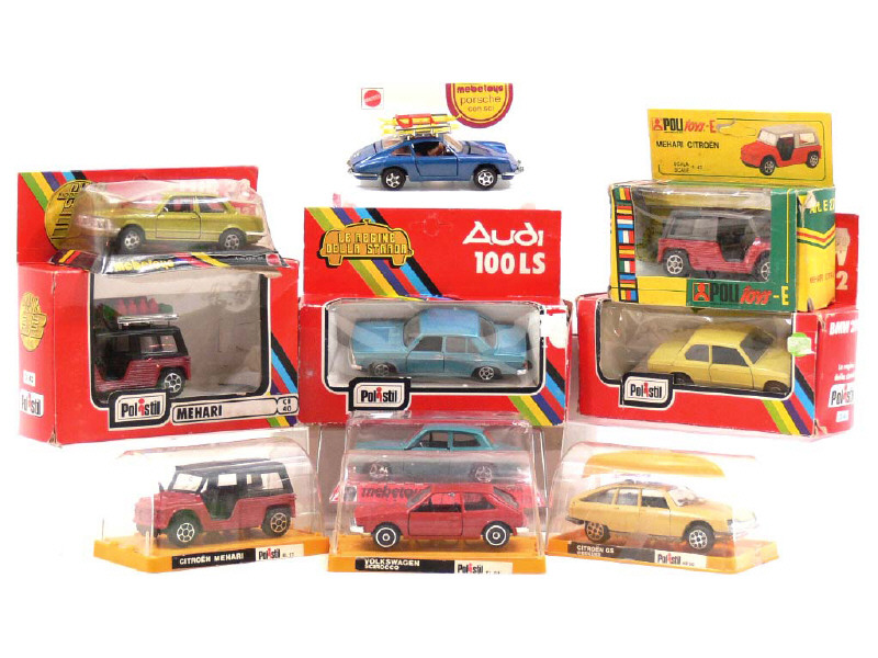 miniatures reproduisant les modèles : BMW, CITROËN, FORD, VOLKSWAGEN, AUDI & PORSCHE - on y retrouve les marques : POLISTIL, POLITOYS & MEBETOYS