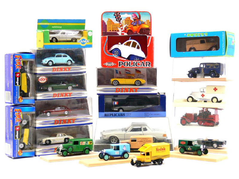 miniatures reproduisant les modèles : BMW, CITROËN, CHEVROLET, JAGUAR, MERCEDES, MORRIS, MG, TRIUMPH & VOLKSWAGEN - on y retrouve les marques : BBURAGO, DINKY MATCHBOX, ELIGOR, GAMA, LLEDO, REPLICARS, PILEN, MICAROLA & NACORAL