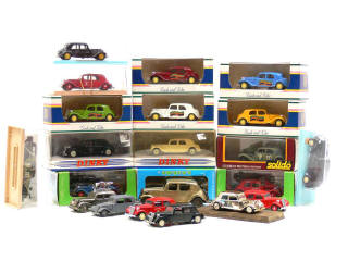 on y retrouve notamment les marques : DINKY MATCHBOX, ELIGOR, SOLIDO & FAL - un modèle faisant office de briquet - 3 véhicules sans boîte & 6 autres avec boîte en état 'd'