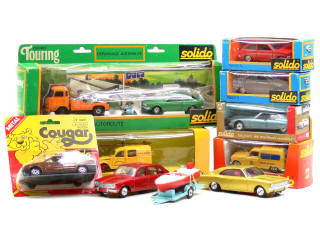SOLIDO (FRANCE) Ensemble de 10 véhicules & un bateau sur remorque