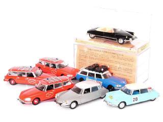 on y retrouve les marques : NOREV & UNIVERSAL HOBBIES - manque une antenne - un modèle en état 'B' & un autre avec boîte en état 'a' - on y joint une affichette sur la DS anglaise