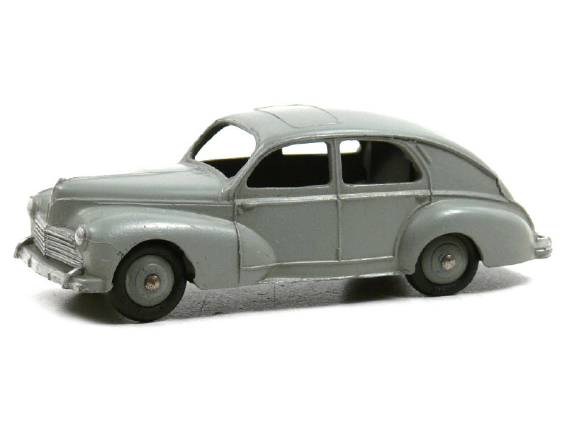DINKY TOYS (FRANCE) 24R PEUGEOT 203 Petite lunette arrière (version avec intérieur de toit lisse & feu de stop) gris moyen, jantes identiques