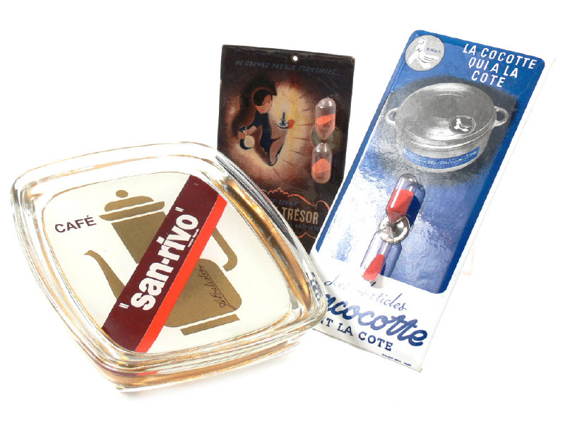 DIVERS Ensemble d'un ramasse-monnaies & 2 sabliers publicitaires