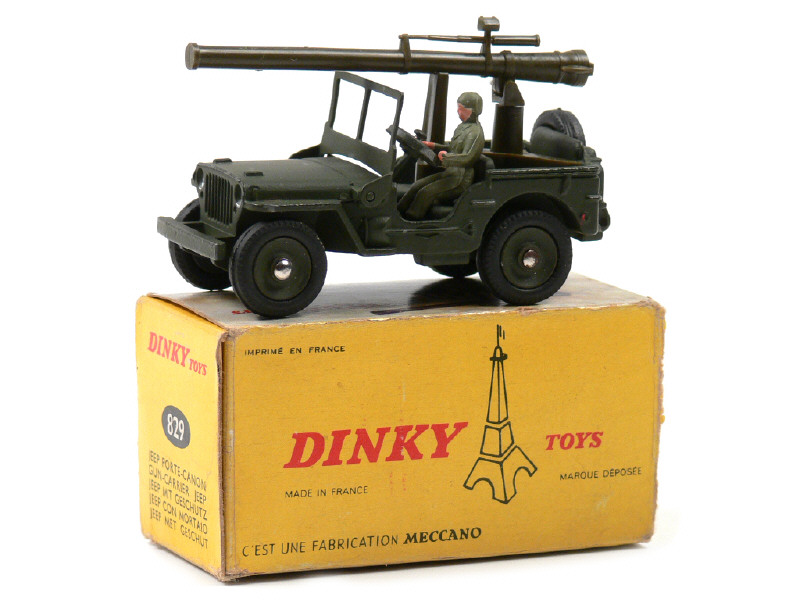 DINKY TOYS (FRANCE) 829 JEEP WILLYS Porte-canon kaki