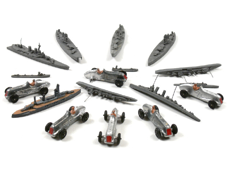 DINKY TOYS (GB) Ensemble de 6 voitures de course & 11 navires de guerre