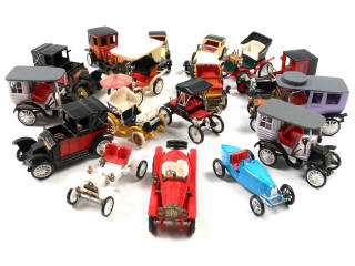 états de 'C' à 'R' - miniatures reproduisant les modèles : BUGATTI, DELAHAYE, HISPANO SUIZA, PEUGEOT, PANHARD & LEVASSOR, RENAULT, PACKARD, CITROËN, SIZAIRE & NAUDIN, ROCHET-SCHNEIDER, OLDSMOBILE & SPA - on y retrouve les marques : JMK, SAFIR & MINIALUXE - petits manques