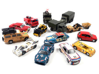 miniatures reproduisant les modèles : BMW, BERLIET, GMC, JEEP, LAND ROVER, LOLA, MERCEDES, PORSCHE, RENAULT & UNIC (jantes légèrement fondues)