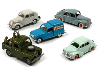 miniatures reproduisant les modèles : LAND ROVER, PEUGEOT & RENAULT