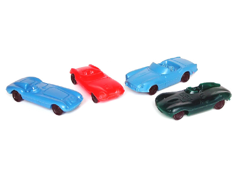 miniatures reproduisant les modèles : JAGUAR, TRIUMPH, FERRARI & LOTUS - légères rayures sur une voiture