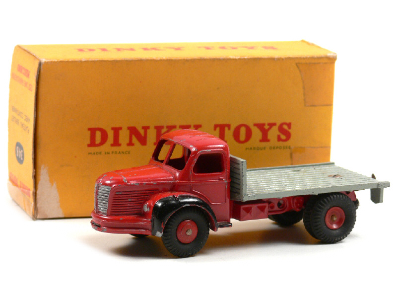DINKY TOYS (FRANCE) 34B BERLIET Plateau avec container (version avec goupille) rouge, plateau gris clair