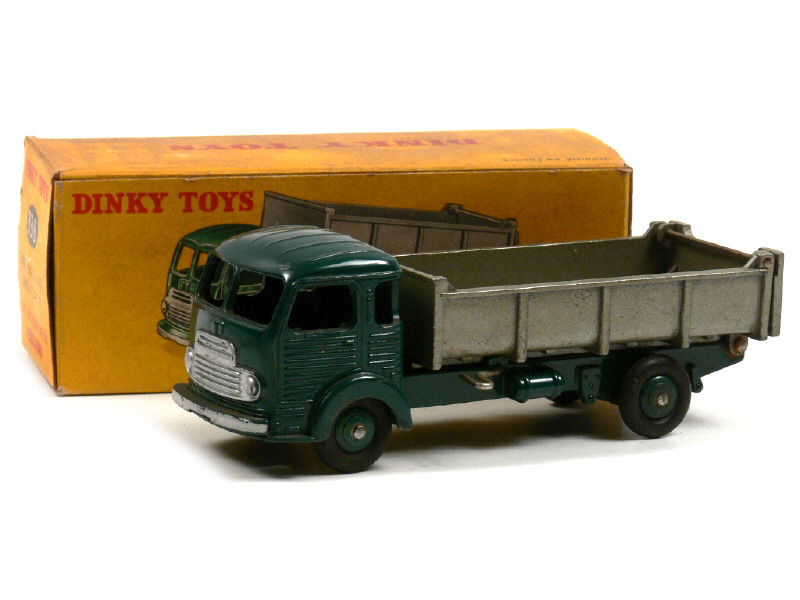 DINKY TOYS (FRANCE) 33B SIMCA CARGO Benne basculante vert foncé, benne gris métal doré (intérieur lisse)