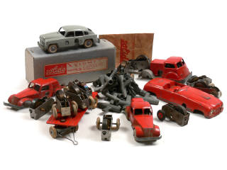 SOLIDO (FRANCE) Ensemble de 2 voitures, 3 camions, une remorque & 10 moteurs à clef