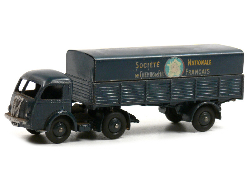DINKY TOYS (FRANCE) 32AB PANHARD Semi-remorque 'S.N.C.F' (version avec intérieur de toit lisse) bleu foncé (publicité avec locomotive sur carte de France)