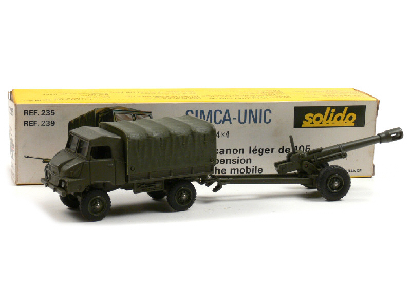 SOLIDO (FRANCE) 235-239 SIMCA UNIC S.U.M.B. 4x4 bâché avec canon léger tracté de 105 mm kaki
