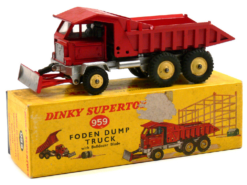 DINKY TOYS (GB) 959 FODEN DUMP TRUCK avec lame rouge & argent, jantes jaunes