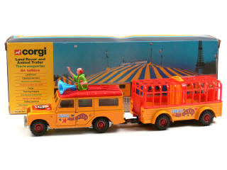 CORGI TOYS (GB) LAND ROVER avec remorque-cage 'JEAN RICHARD' orange & rouge