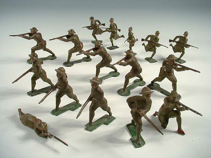 FIGURINES en plomb creux Ensemble de 16 soldats anglais au combat
