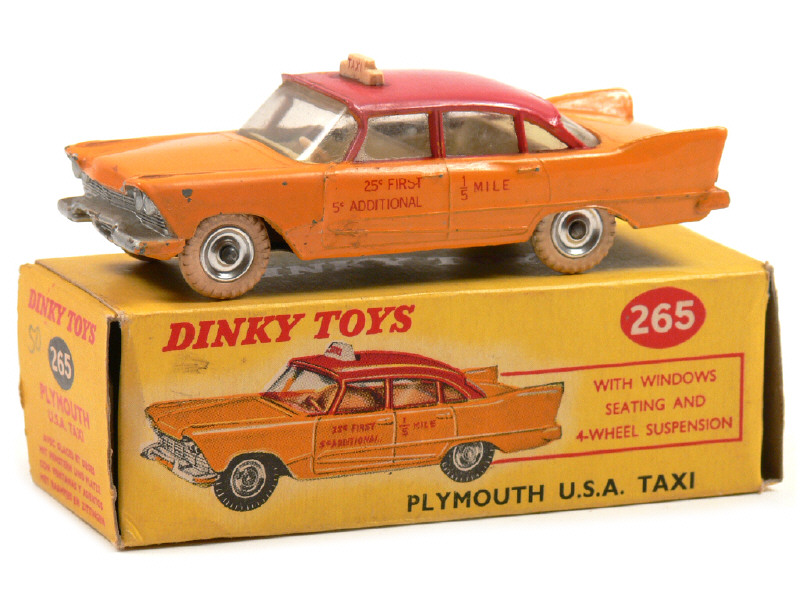 DINKY TOYS (GB) 265 PLYMOUTH PLAZA U.S.A. 'TAXI' jaune d'or & framboise