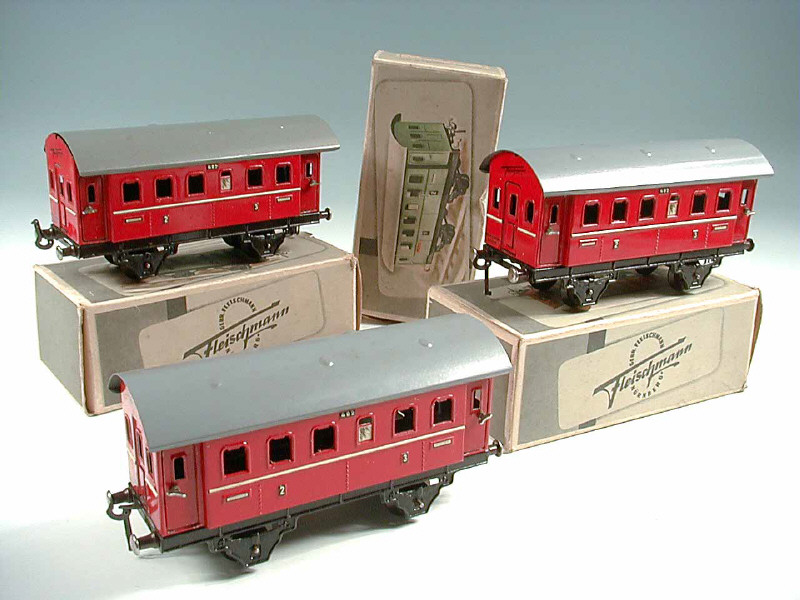 FLEISCHMANN 'O' (ALLEMAGNE) 402 Voiture-voyageurs 2ème & 3ème classes rouge & gris