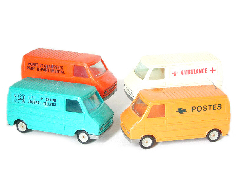 échelle 1/32ème - divers manques - un pare-brise fêlé - axes de roues oxydés - comprend les versions : 'Ambulance', 'Postes', 'TF1' & 'Ponts et Chaussées'