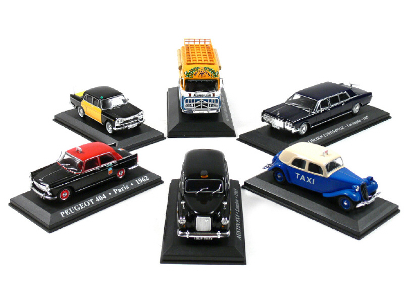 miniatures reproduisant les modèles : CITROËN (manque un phare), SEAT, AUSTIN, PEUGEOT, RENAULT & LINCOLN