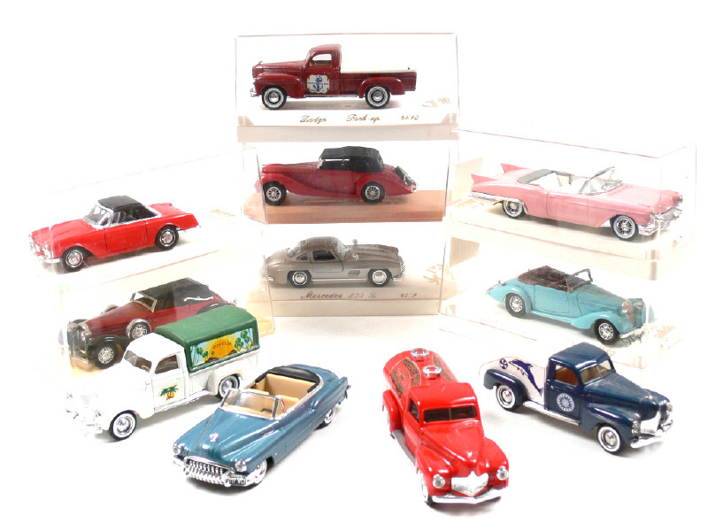miniatures reproduisant les modèles : BUICK, CADILLAC, DELAHAYE, DELAGE, DODGE, FACEL VEGA, MERCEDES & TALBOT - 4 véhicules sans boîte