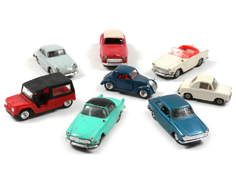 états de 'C' à 'E' - miniatures reproduisant les modèles : CITROËN, PEUGEOT (JET-CAR métal), PORSCHE, SIMCA, RENAULT & VESPA - avec manques