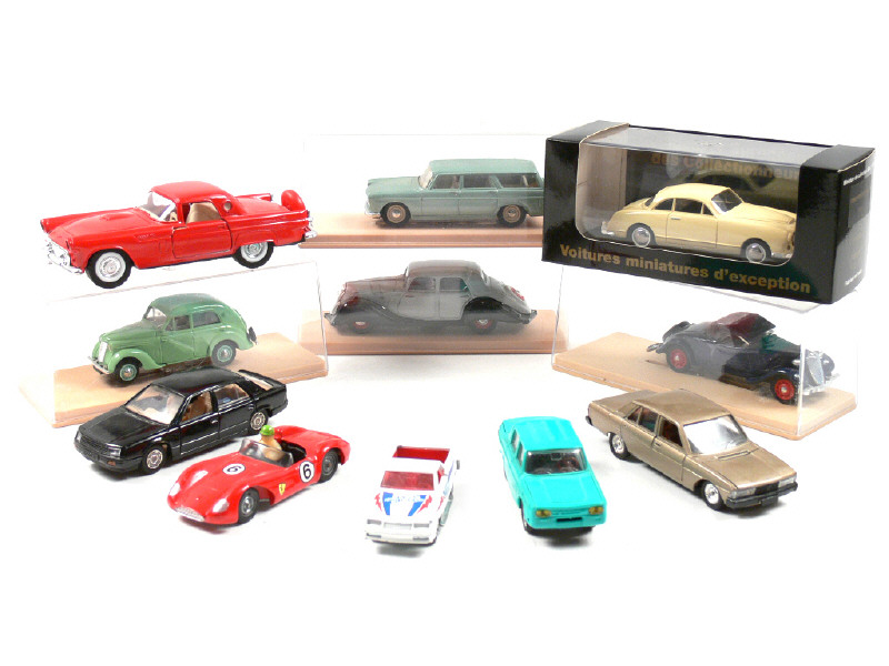 états de 'A' à 'C' - miniatures reproduisant les modèles : CHEVROLET, FORD, FERRARI, CITROËN, PEUGEOT, PANHARD & RENAULT - on y retrouve les marques : ELIGOR, VEREM, MAJORETTE & MINIALUXE - 5 voitures en boîte - avec manques