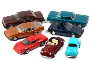 miniatures reproduisant notamment les modèles : RENAULT, FERRARI, VOLVO, VOLKSVAGEN, BENTLEY & PLYMOUTH - on y retrouve les marques : IDEM, WESTERN MODELS & CENTURY - une voiture avec détails de peinture ajoutés
