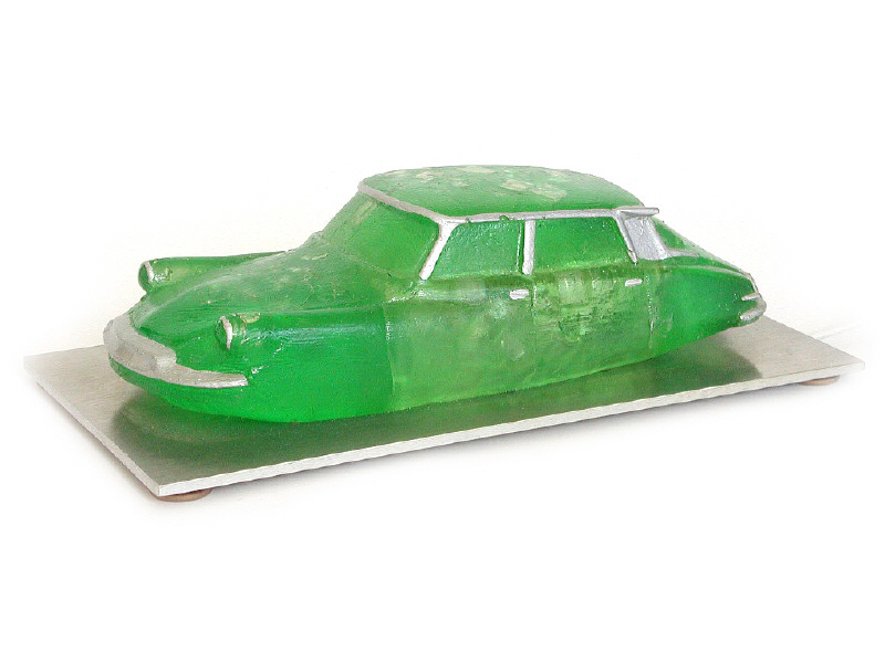 longueur 26 cm - réalisation en résine translucide - d'inspiration GEGE - sur socle - fait office de lampe (fonctionne) - réalisé pour les 40 ans de la DS - OBJET DE DECORATION ORIGINAL !