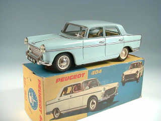 longueur 30 cm - première version sans toit ouvrant ni clignotants avant & poignées de portières rapportées - moteur à friction (fonctionne) - manque sigle PEUGEOT sur le coffre arrière