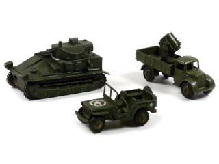 DINKY TOYS (GB) Ensemble d'un char, un camion & une JEEP kaki