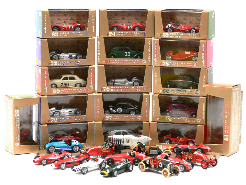 miniatures reproduisant les modèles : ALFA ROMEO, FERRARI, LANCIA, MERCEDES, FIAT, TALBO LAGO, LANCIA-FERRARI, MASERATI, BLITZEN BENZ, VANWALL & RENAULT - 10 voitures sans boîte