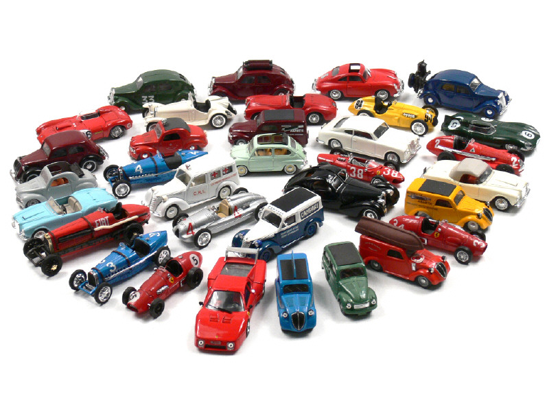 miniatures reproduisant notamment les modèles : ALFA ROMEO, BUGATTI, FERRARI, FIAT, JAGUAR, LANCIA, PORSCHE & MERCEDES - quelques petits détails de peinture ajoutés