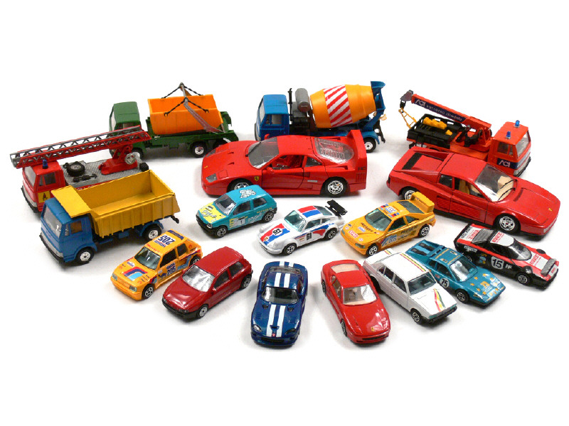 miniatures reproduisant les modèles : RENAULT, FERRARI, MAZDA, LAMBORGHINI, SUZUKI, LANCIA, PEUGEOT, PORSCHE, FIAT, DODGE & ALFA ROMEO - une voiture à l'échelle HO & 2 autres à l'échelle 1/24ème